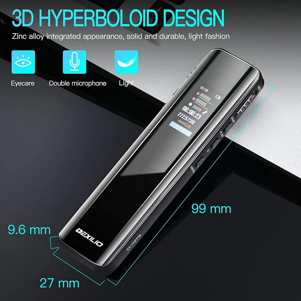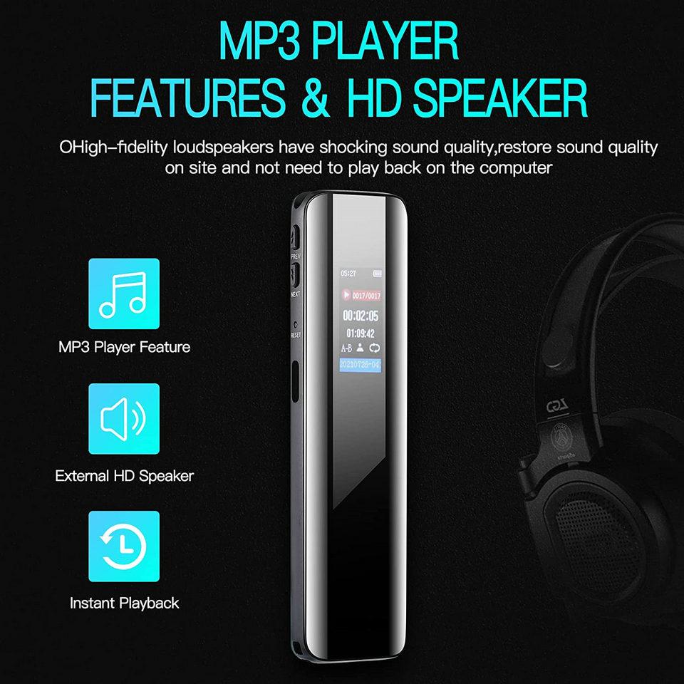 Цифровой диктофон 1536 кбит/с Многофункциональная запись звука с одной клавишей Длительный резервный микрофон MP3-плеер с экраном