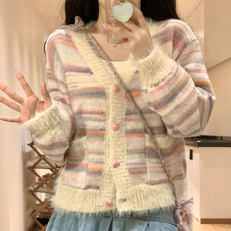 Маленькие ароматные свитера в полоску, вязаные свитера, кардиган, женский весенне-осенний свободный ветровой молочный кардиган, свитер, женское пальто
