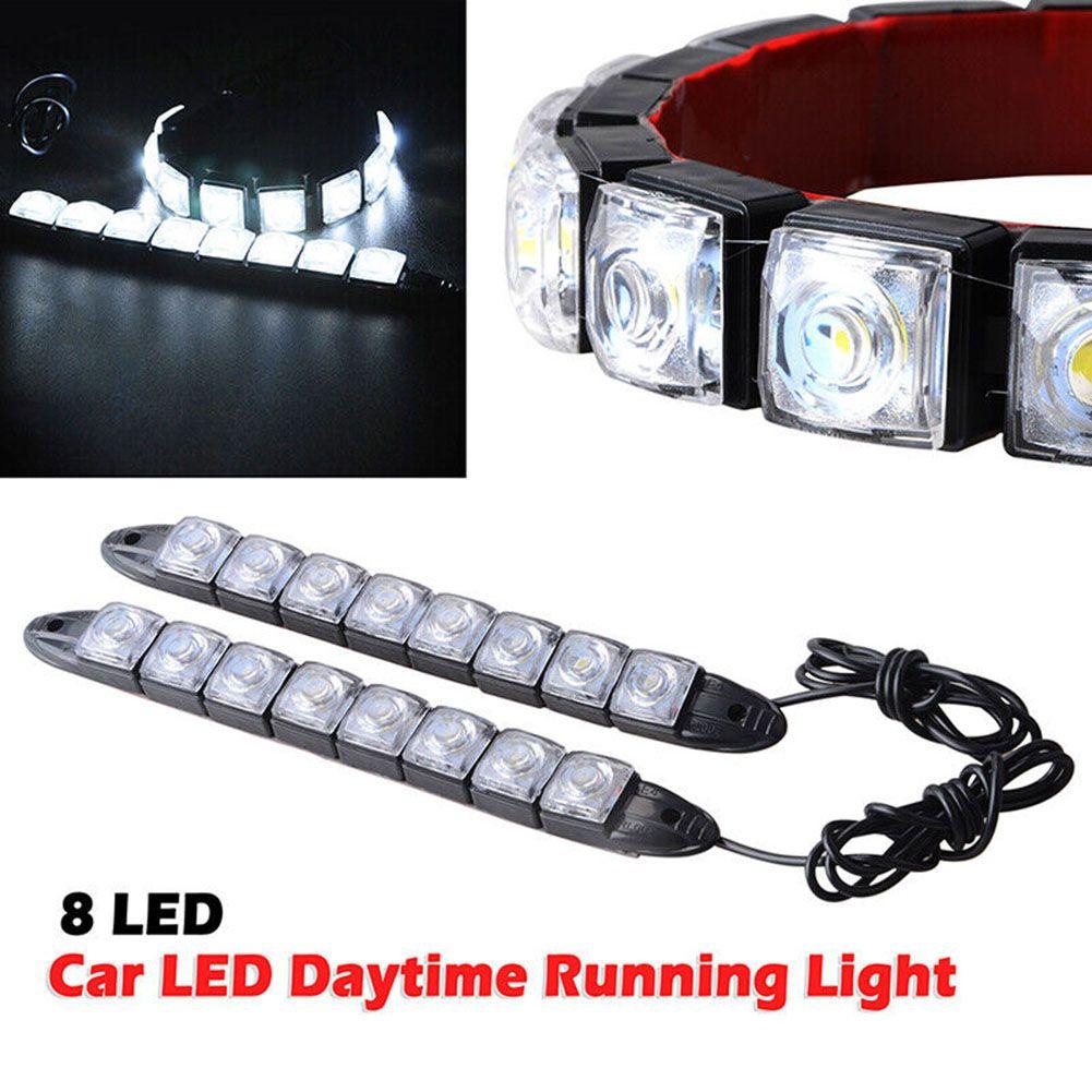 2 шт., 12 В, 8 светодиодных дневных ходовых огней, DRL, автомобильные противотуманные фары дневного света, белые гибкие световые полосы, универсальные фары