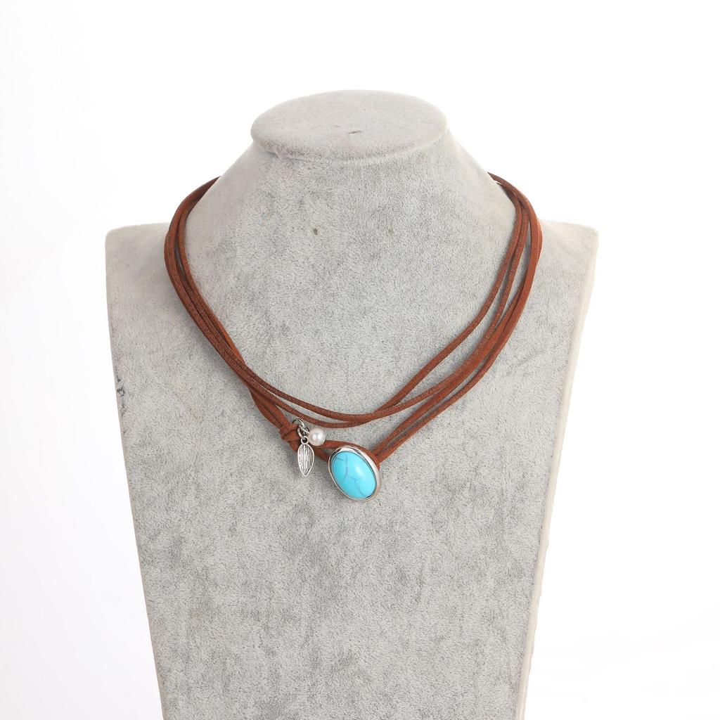 Ожерелье из бирюзовой кожи в богемном стиле, художественное многослойное ожерелье в стиле ретро, модное ожерелье с подвеской в стиле «любовь», нишевый дизайн