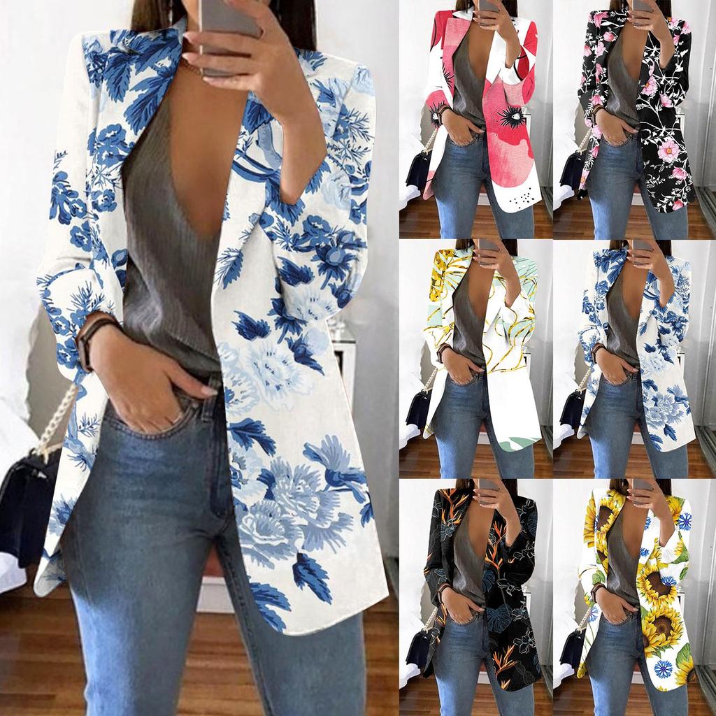 Женская повседневная модная приталенная куртка с длинным рукавом и принтом — купить товар онлайн с бесплатной доставкой по всему миру!
