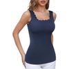 Attraco Встроенная бюстгальтерная майка для женщин с квадратным вырезом и отделкой фестонами, летняя майка без рукавов в рубчик