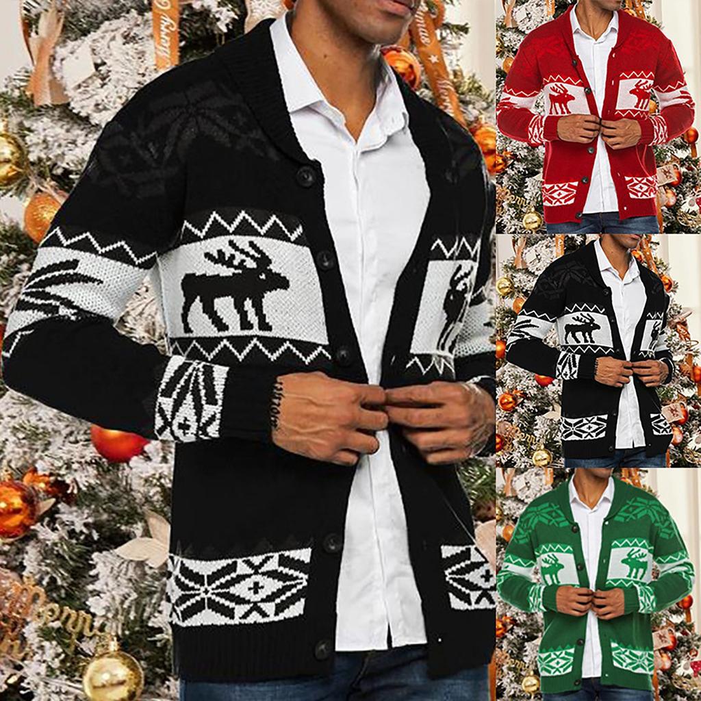 Рождественский осенне-зимний мужской удобный кардиган, свитер с лацканами и пуговицами, свитер, куртка, мужская — купить товар онлайн с бесплатной доставкой по всему миру!
