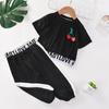 Комплект детской одежды из 2 предметов, весенне-летние костюмы для девочек, топ с короткими рукавами с надписью «вишня» + брюки, комплект одежды