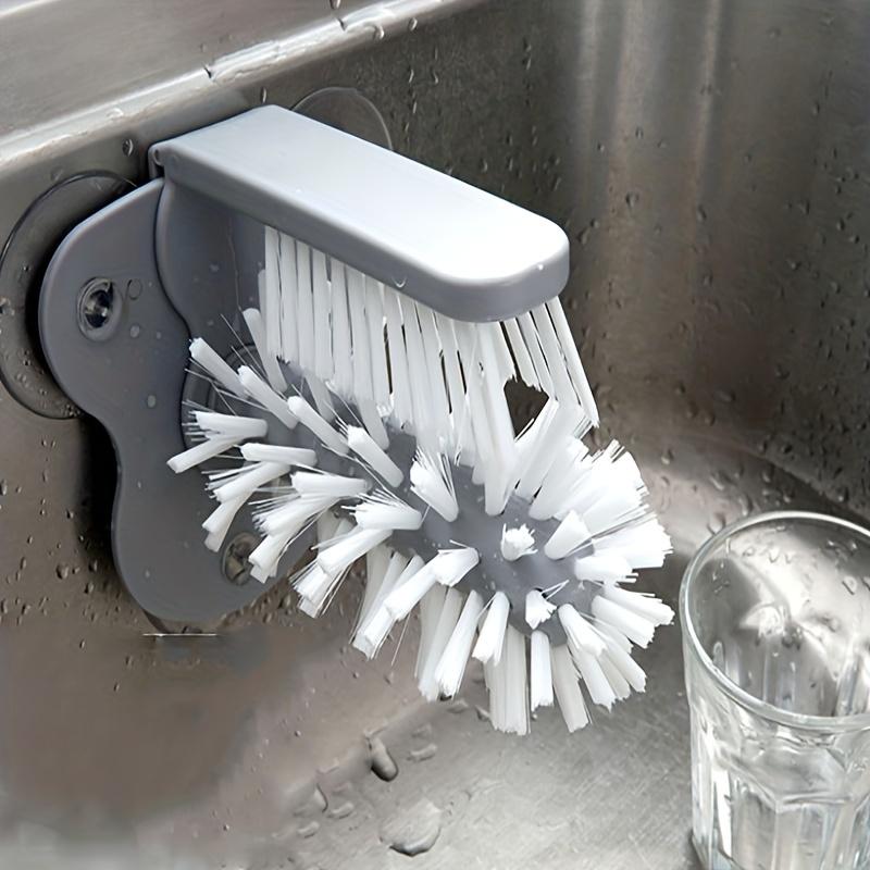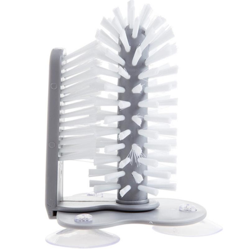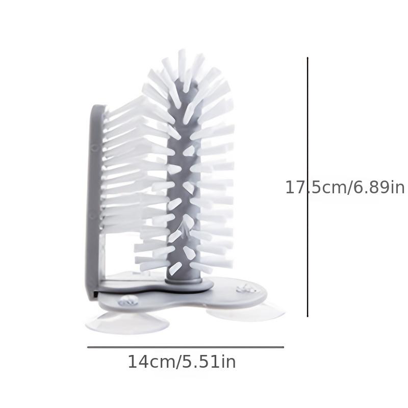 ПРИСОСКИ: На дне щетки есть три большие присоски, основание присоски прочно прикрепляется к стенному столу или или прикрепляется к нижней части раковины, просто скользите стеклянной посудой между двумя наборами щетинок, удобных в использовании и очистке.