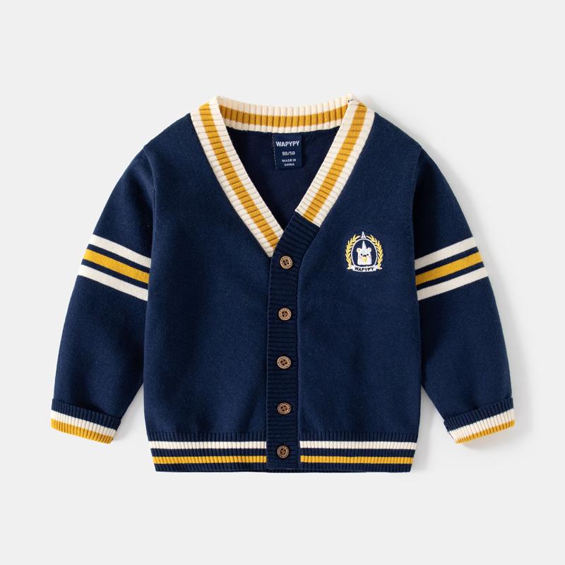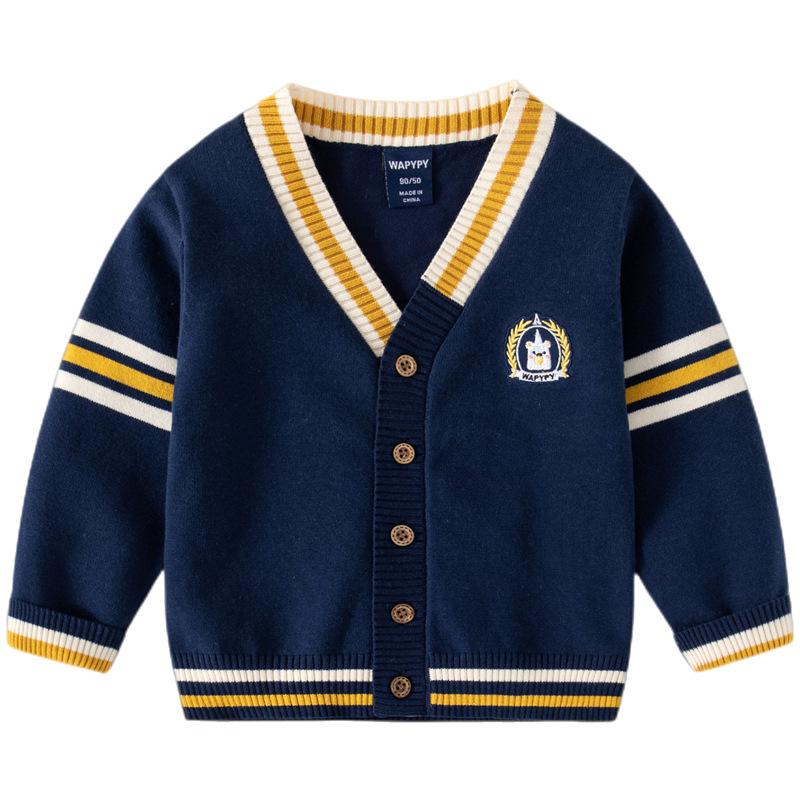 Детский повседневный свитер, осень 2023, кардиган с v-образным вырезом, свитер для мальчиков