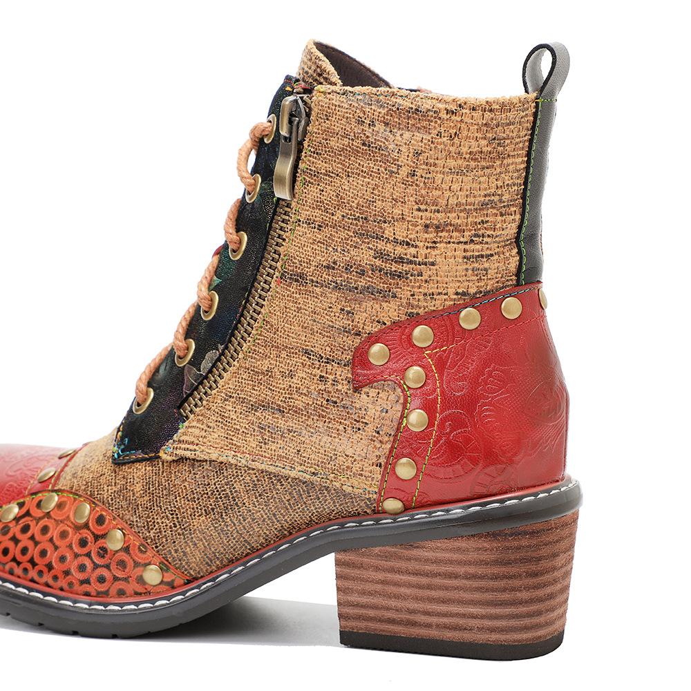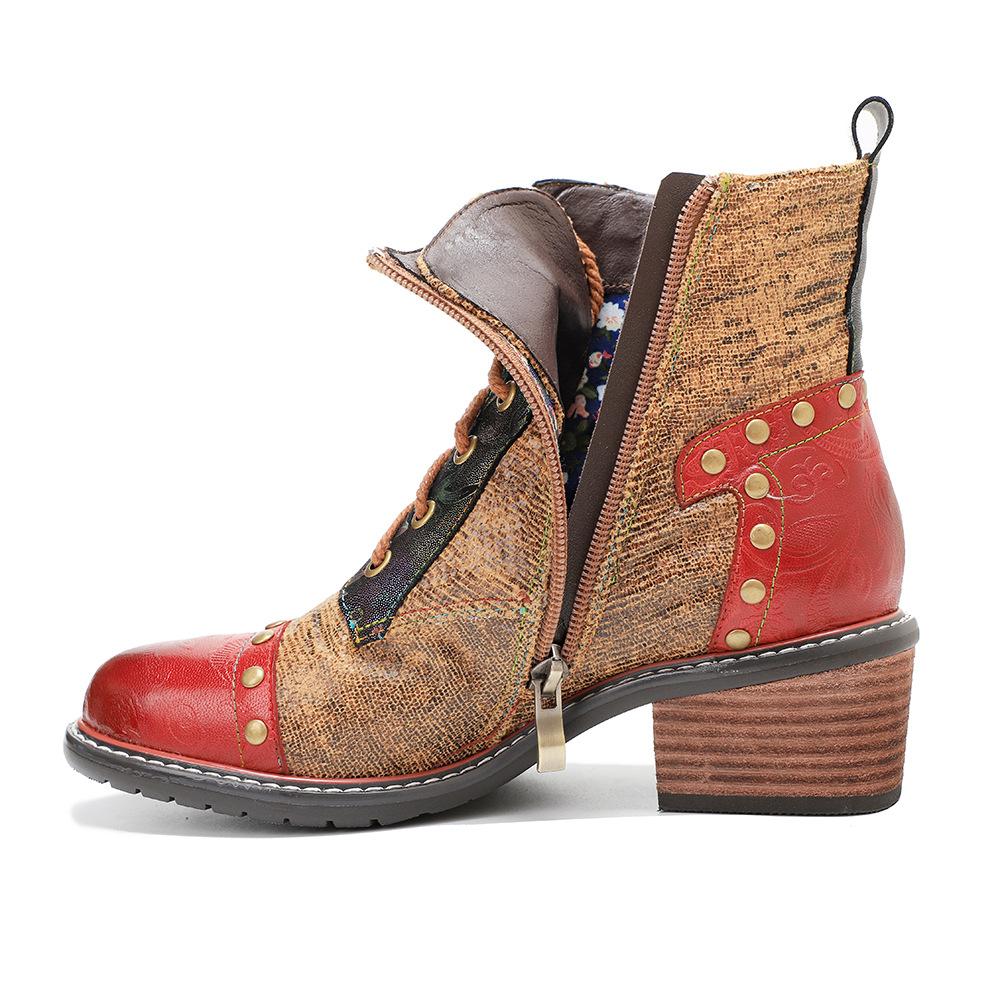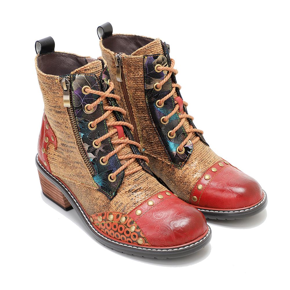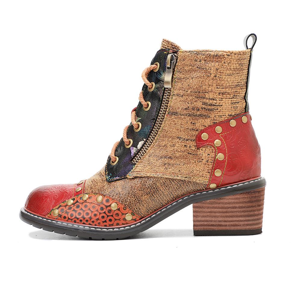 Johnature Обувь из натуральной кожи. Женские ботинки с круглым носком. Ретро-ботинки на молнии ручной работы. Лаконичные ботильоны на платформе для отдыха.