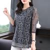 Женская рубашка с кружевным низом и рукавом три четверти, женская рубашка средней длины со средними рукавами, большой размер, полый свободный сетчатый топ