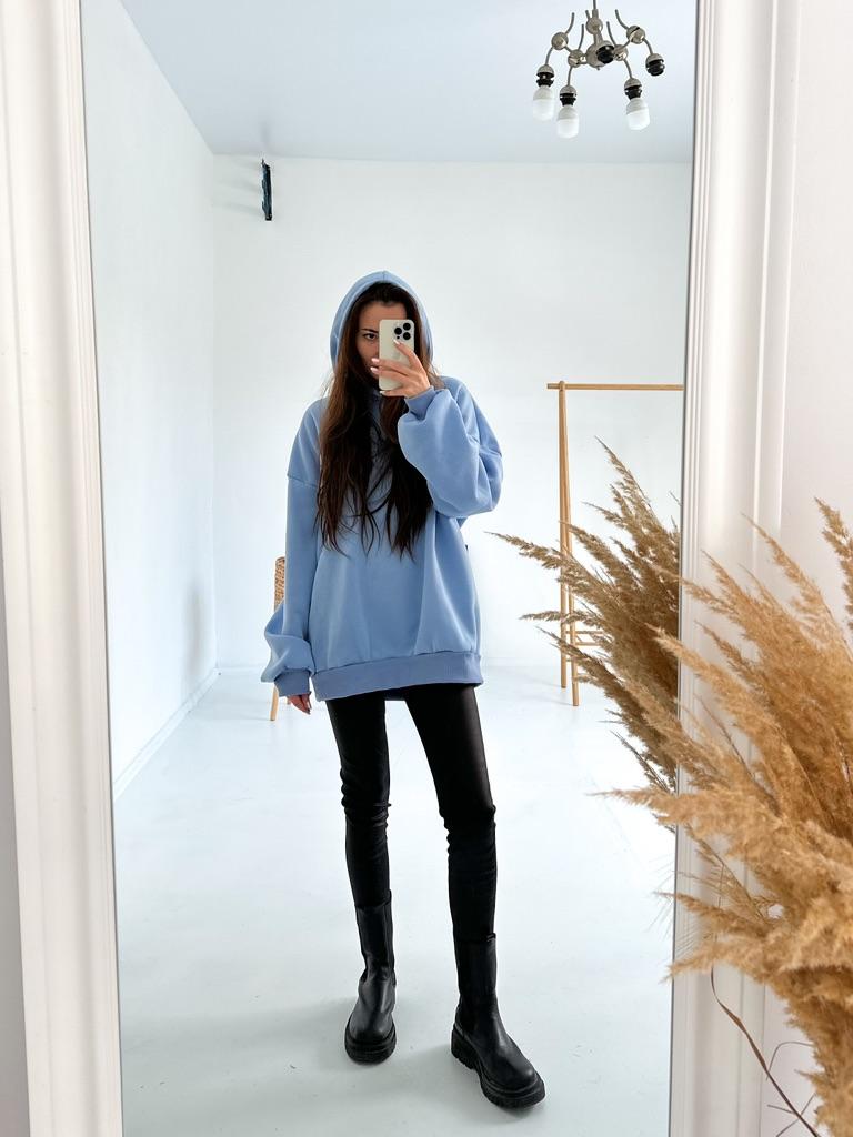 Толстовка оверсаиз с капюшоном ●На параметры 84-60-85, рост 167 ,размер М сидит свободна, oversize ●Материал 95% полиэстер, к телу мягкий и приятный. ●Рукава не короткие! Толстовка средне тёплая с флисом внутри. Очень классная и стильная , рекомендую однозначно! Можно сочетать с кожаными леггинсами .