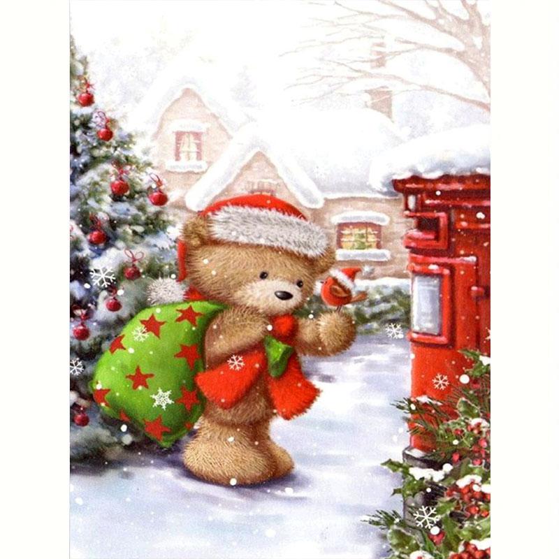Зимний комплект алмазной живописи, Рождественская Снежная Алмазная мозаика, мультяшный медведь, вышивка, Настенный декор, подарок 30x40 см/12x16 дюймов