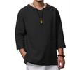 Мужская рубашка свободного кроя из хлопка и льна с длинным рукавом и v-образным вырезом