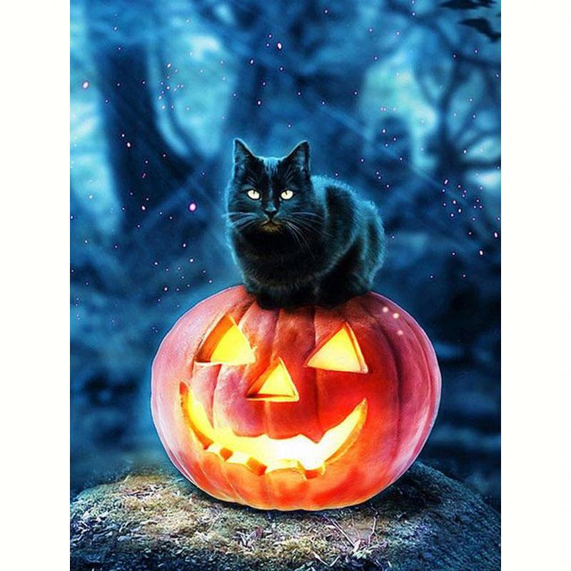 5D алмазная живопись черный кот тыква Алмазная вышивка Хэллоуин мозаика комплект со стразами подарок 30x40 см/12x16 дюймов