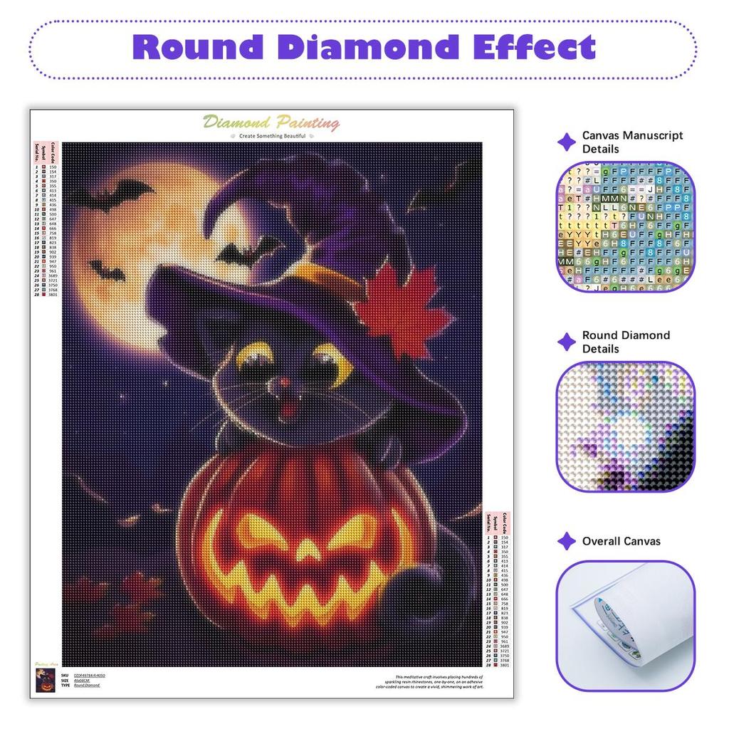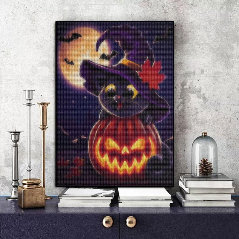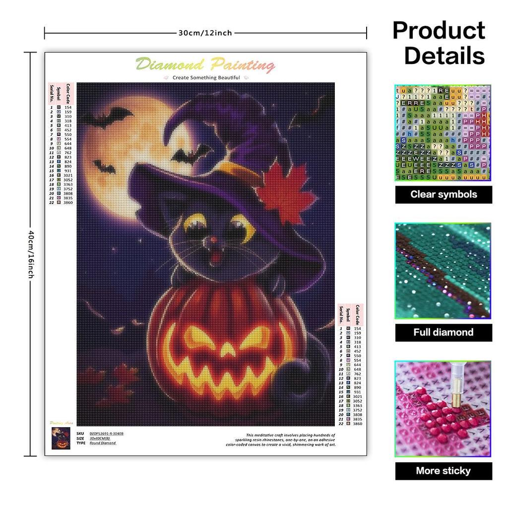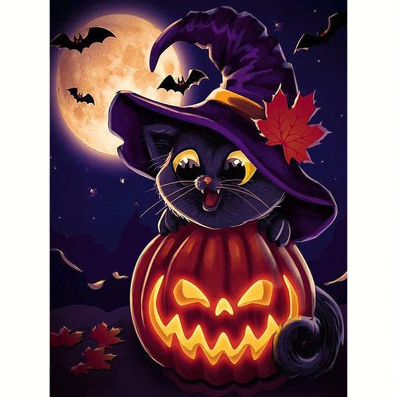 Полный круглый алмаз живопись Хэллоуин кошка вышивка тыква мозаика картина из страз подарок ручной работы 30x40 см/12x16 дюймов без