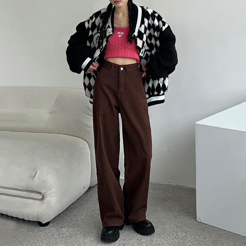 Коричневые джинсы, женские летние мешковатые прямые широкие брюки с высокой талией, женские повседневные уличные брюки Y2k, винтажные джинсовые брюки