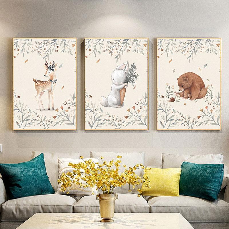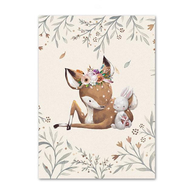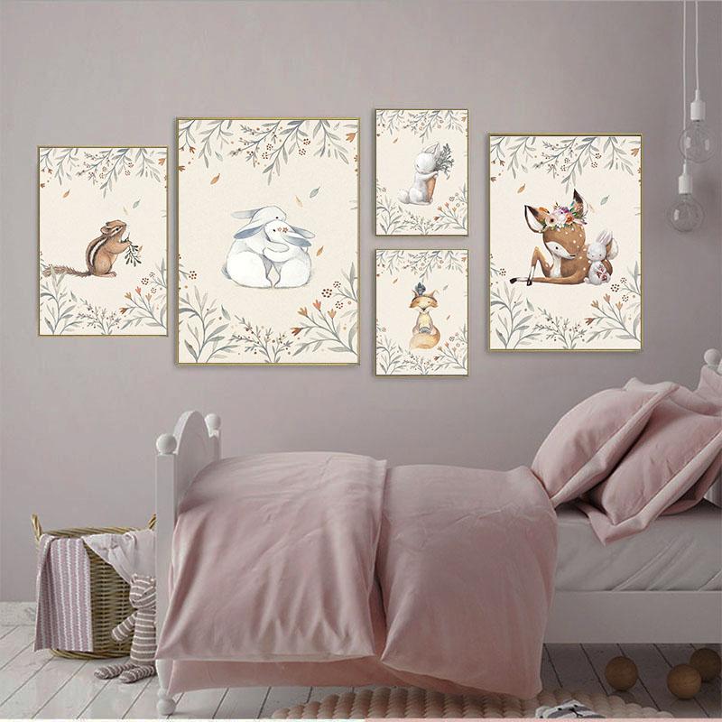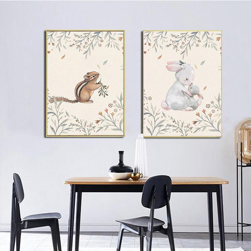 Лесные маленькие животные, домашний декор, холст, картина, кролик, белка, декор для детской комнаты, постеры и принты, милый постер с оленем, Cuadros