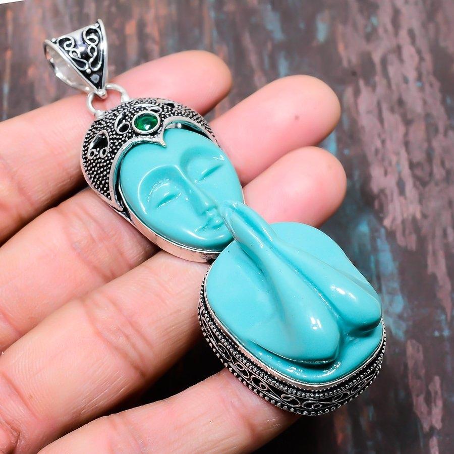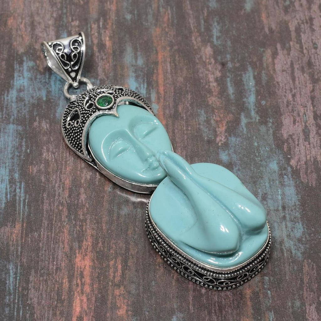 Молящаяся леди, ювелирный кулон ручной работы из стерлингового серебра 925 пробы с драгоценным камнем диопсид