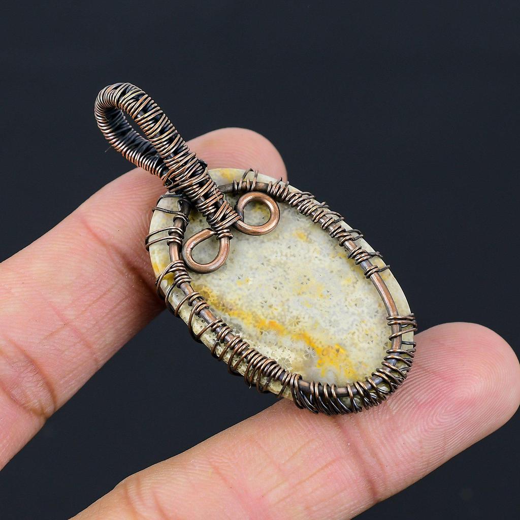Древо Жизни Ископаемый Коралловый Драгоценный Камень Чистая Медная Проволока Обернутая Ювелирные Изделия Ручной Работы Подвеска