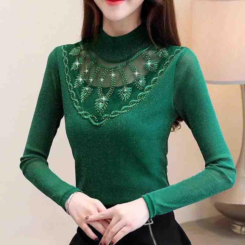 Весна-лето, кружевная рубашка, женская дикая тонкая рубашка большого размера, тонкий ромбовидный топ с половиной высокого воротника — купить товар онлайн с бесплатной доставкой по всему миру!