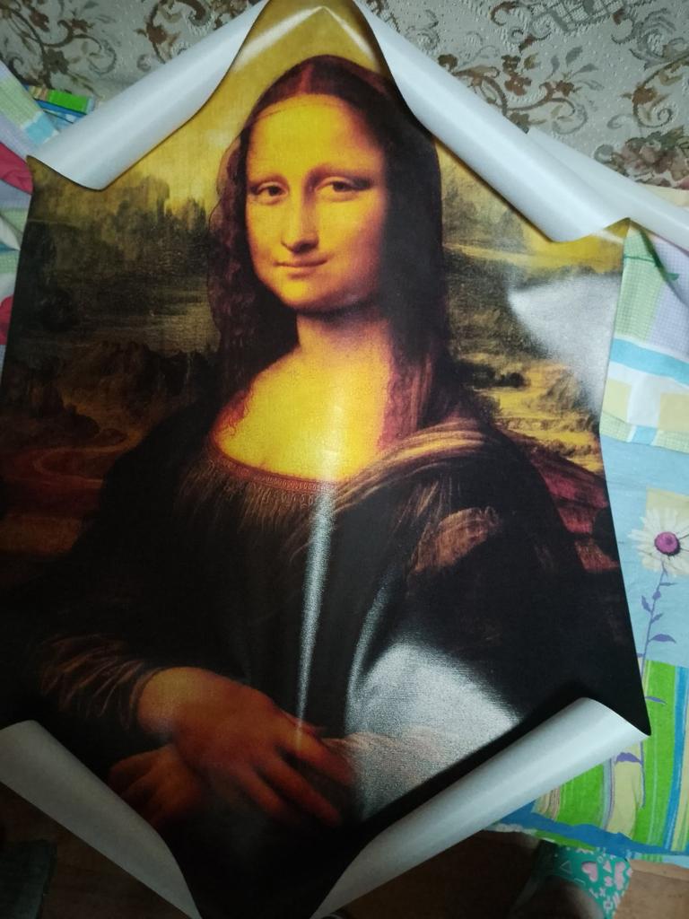 Холст красивый, печать качественная, размеру соответствует, пришла намотанная на пластиковую трубку и аккуратно упакованная в целлофан. Фото не получилось хорошо сделать- получаются блики, а в реальности рисунок равномерный. Осталось рамку купить:))