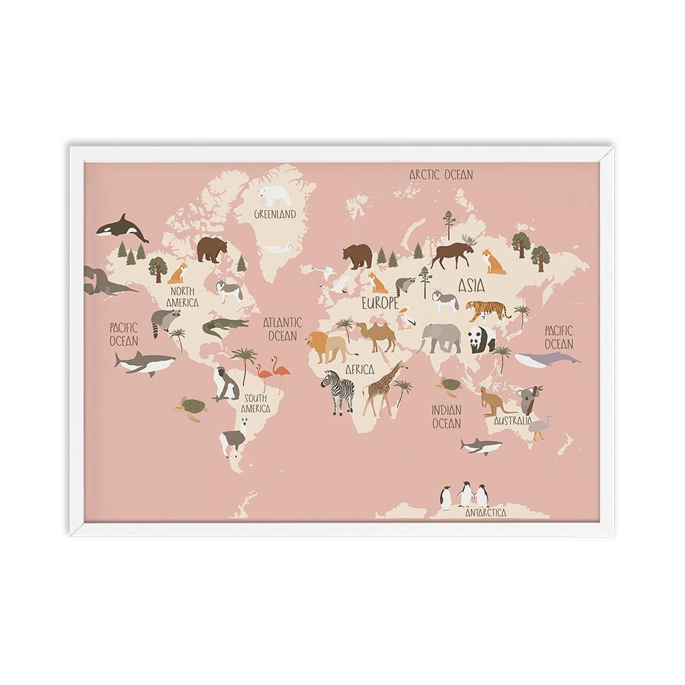 Карта мира животных, настенная живопись на холсте для детской комнаты, фотографии, декор для детской комнаты, скандинавские постеры и принты, милые животные, мультяшные животные