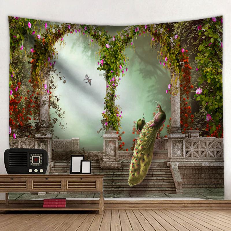 Красивый пейзаж с павлином, гобелен, 3D лесной водопад, пейзаж, настенный домашний фон, тканевый декор, садовый плакат для улицы — купить товар онлайн с бесплатной доставкой по всему миру!