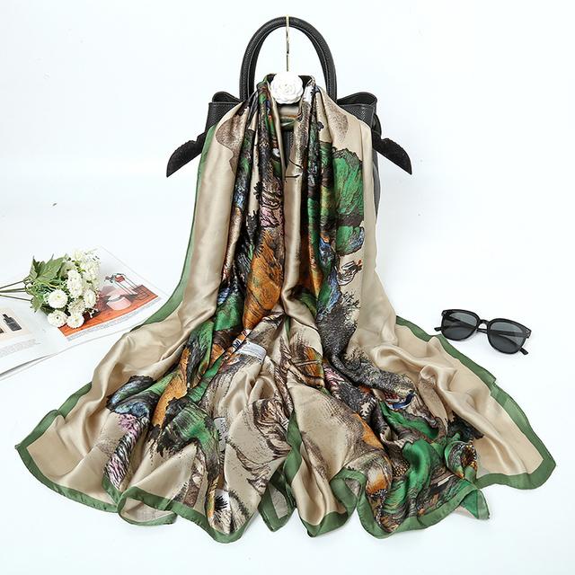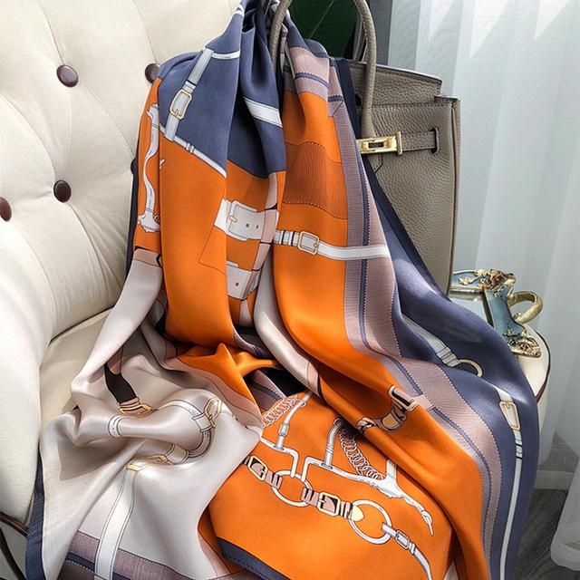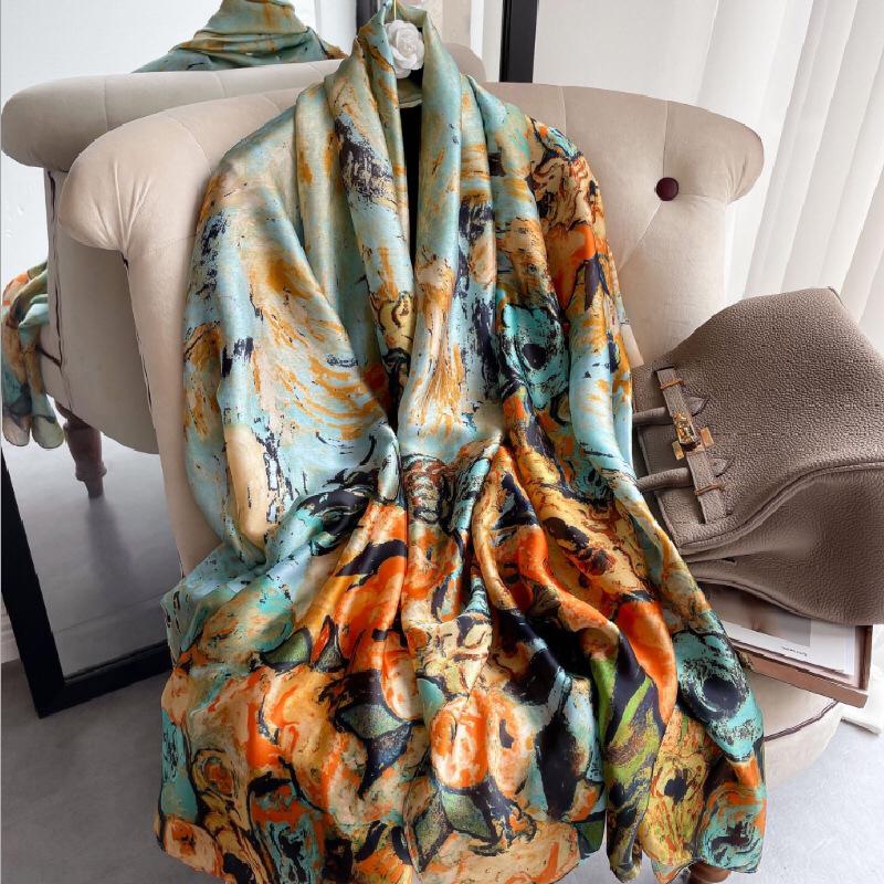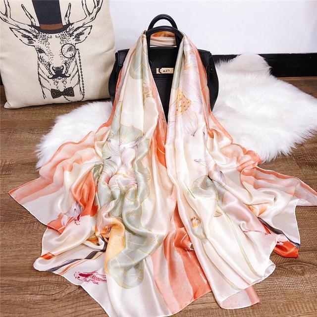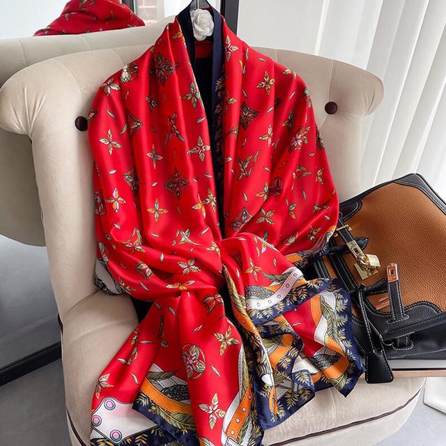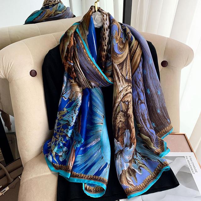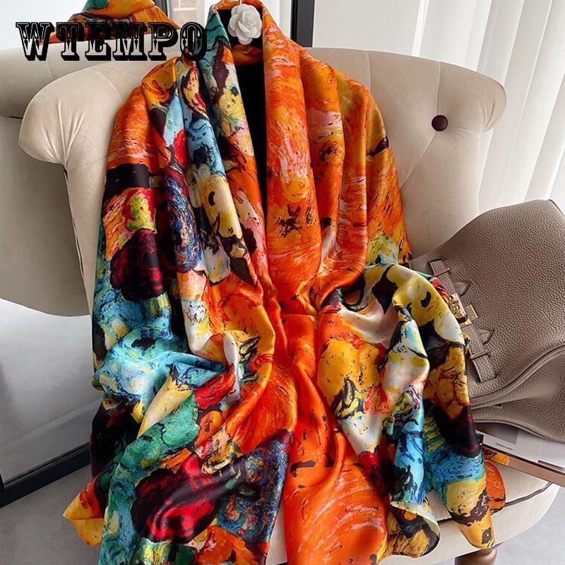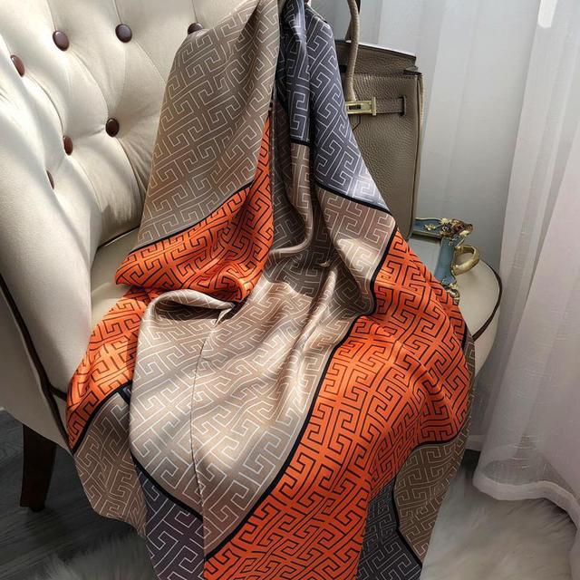 Женский шелковый зимний шарф, роскошный дизайнерский принт, женские пляжные шали, модные гладкие женские платки