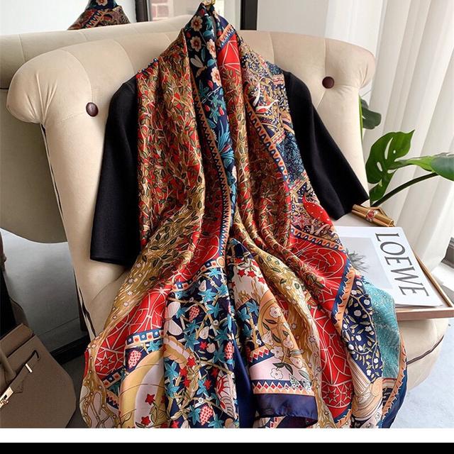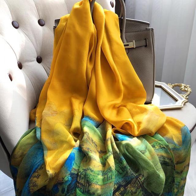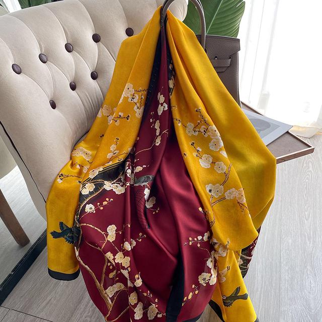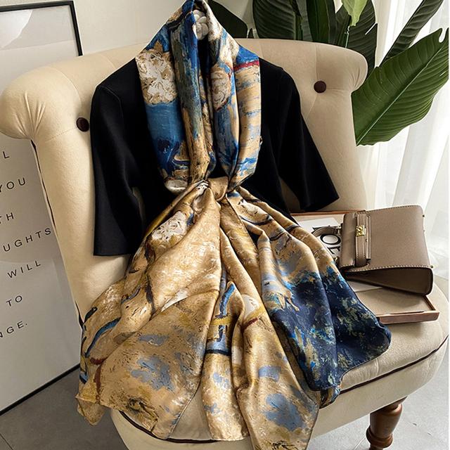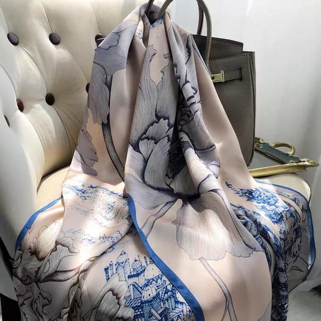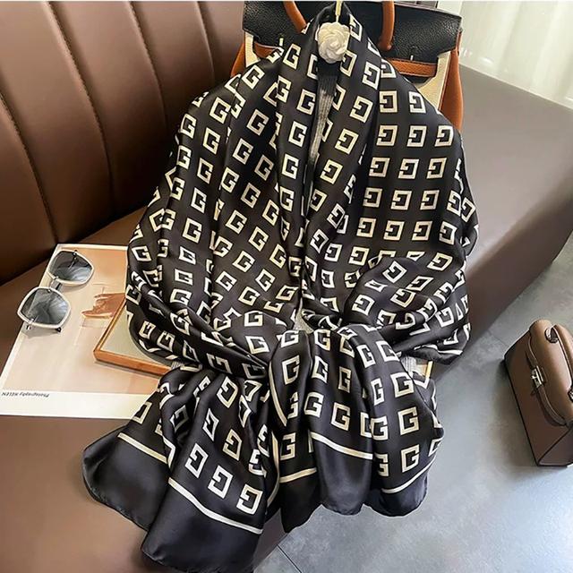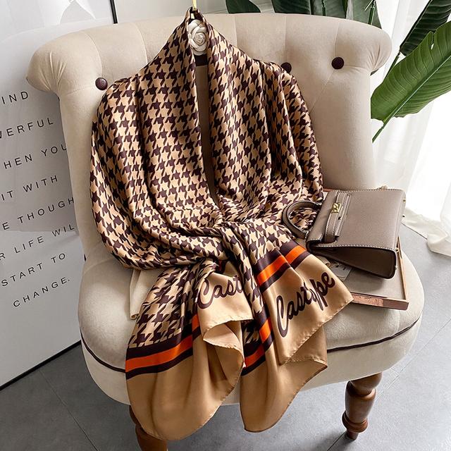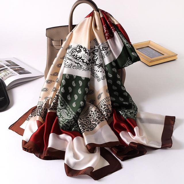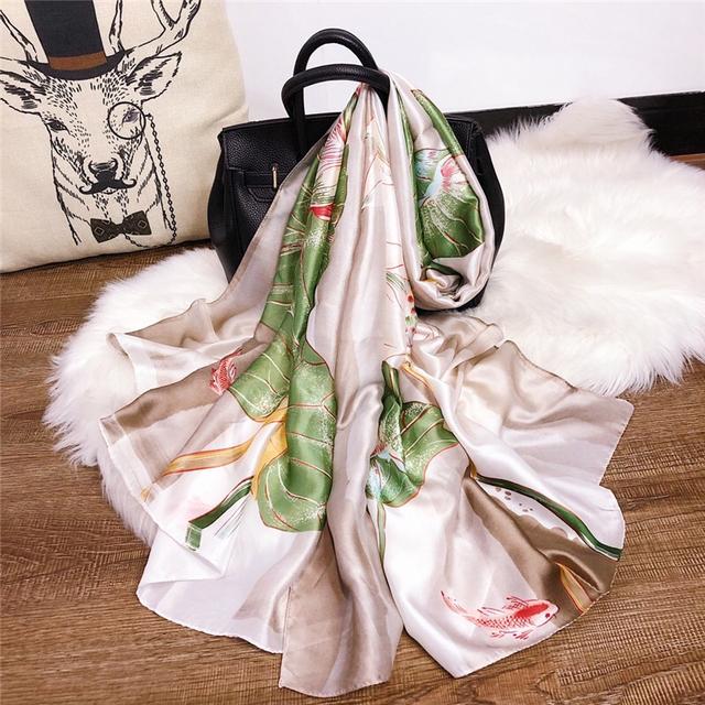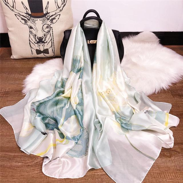 Женский шелковый зимний шарф, роскошный дизайнерский принт, женские пляжные шали, модные гладкие женские платки