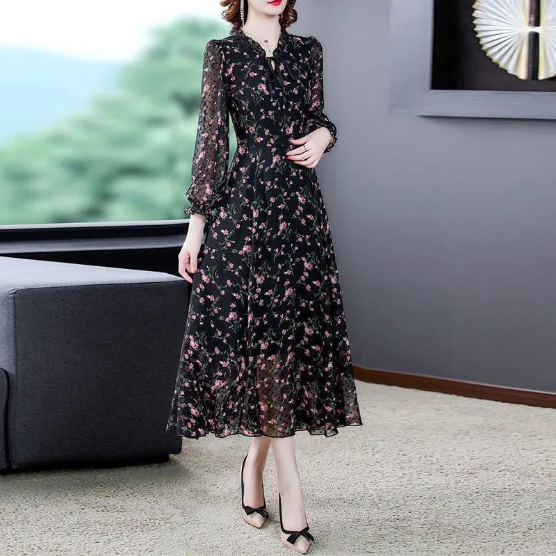 Женское весенне-летнее платье с цветочным принтом, шифоновая вуаль с принтом, полная длина, повседневная одежда L-XXXXXL, большой размер