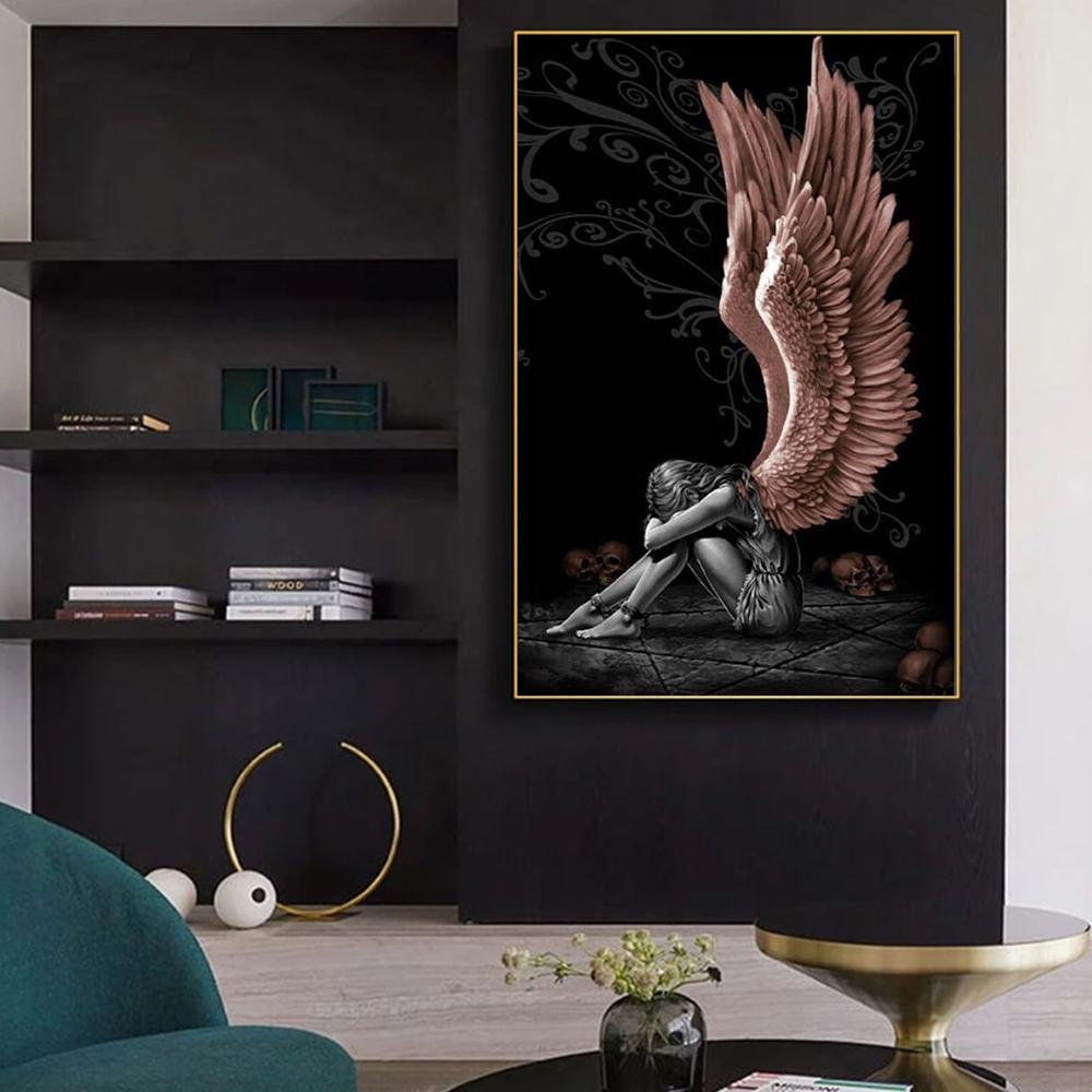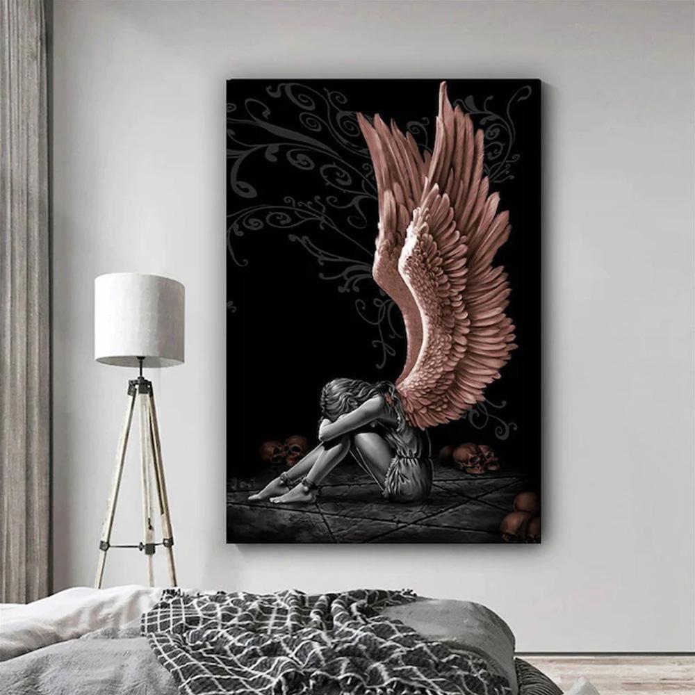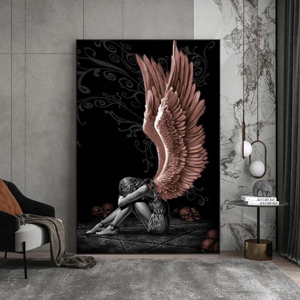 Падший ангел, череп, настенная живопись на холсте, черное граффити, подарочные постеры и принты, настенная роспись для гостиной, домашние фотографии, Декор, Куадрос