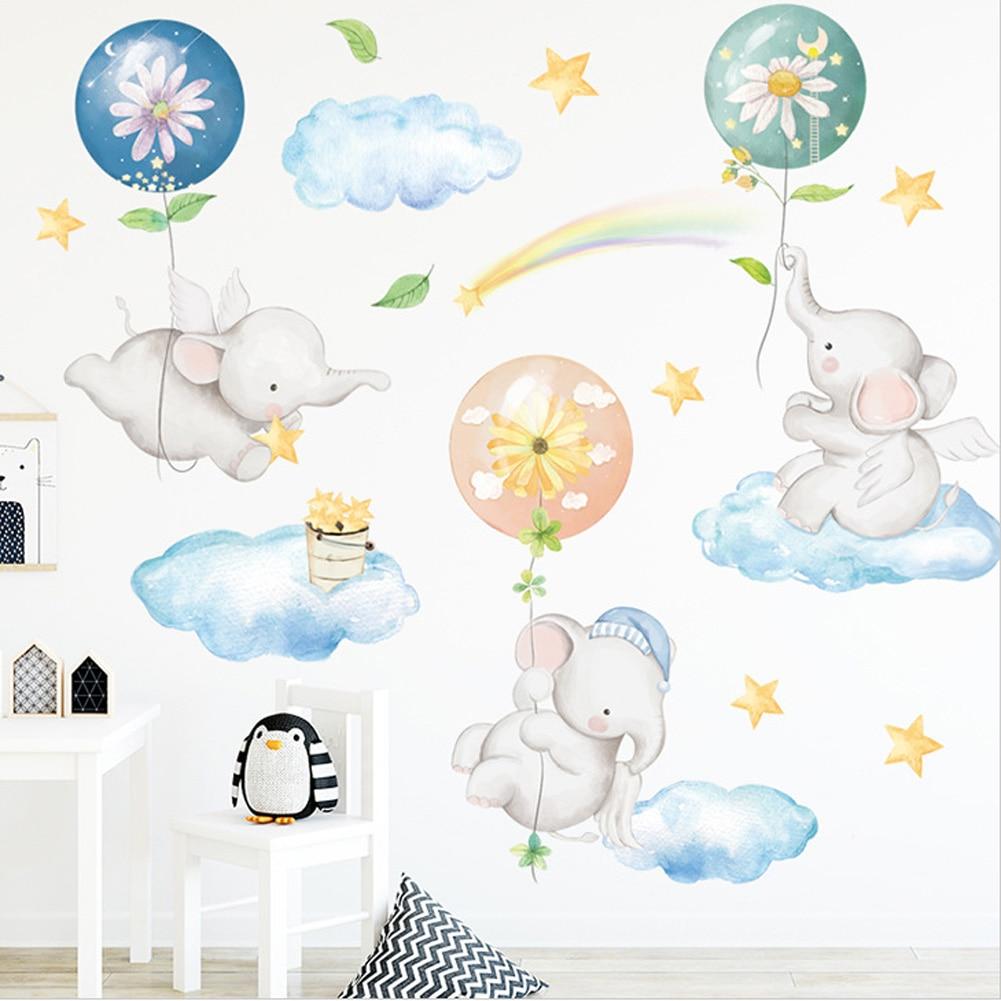 Наклейки на стену с изображением воздушного шара и слона, детская комната, детская спальня, фоновое украшение, обои с изображением мультяшных животных, наклейка для домашнего декора