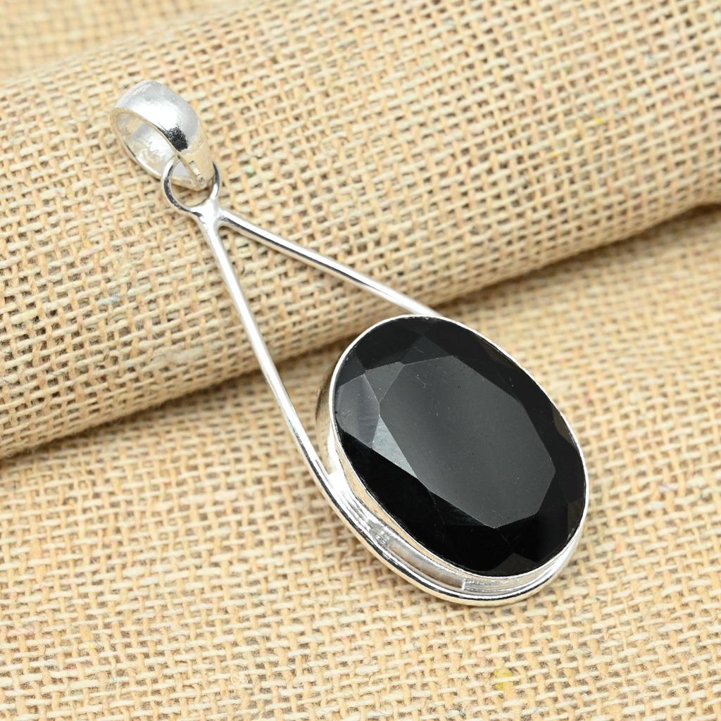 Великолепный черный шпинель драгоценный камень Твердый стерлинговый серебристый стерлинговый серебристый 925 кулон ручной работы для нее