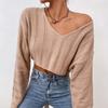 Осенние женские пуловеры с длинными рукавами, сексуальные короткие топы с v-образным вырезом, обнажающие талию, свитера, повседневная свободная однотонная трикотажная одежда 28489