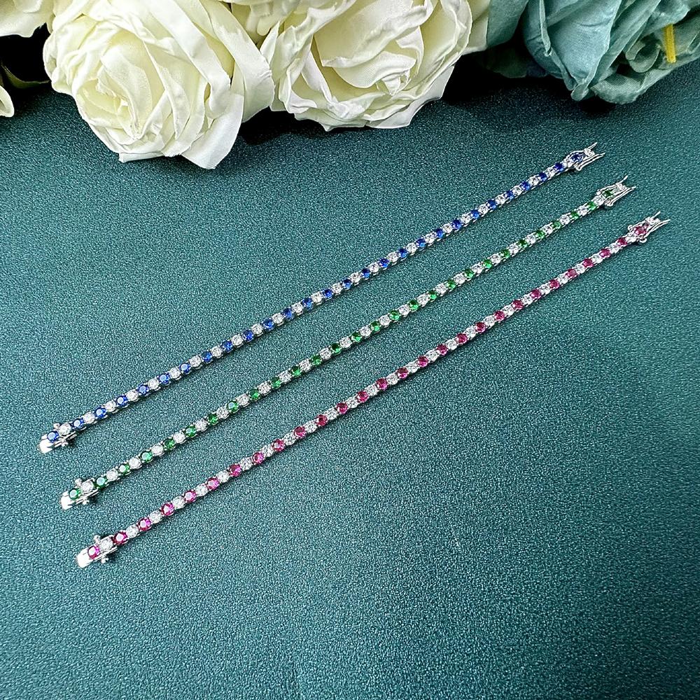 18-каратное позолоченное серебро 925 пробы, круглый 3 мм, теннисный браслет с бриллиантами для женщин, подарок, классические ювелирные изделия