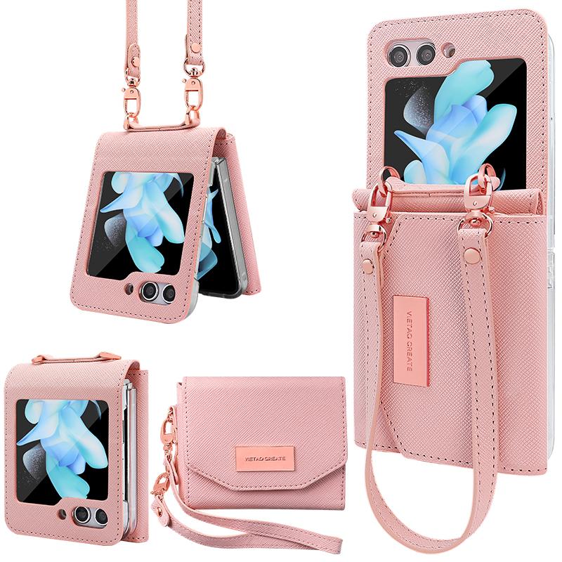 Кожаный чехол-кошелек с несколькими картами для Samsung Galaxy Z Flip 5 4 3 Flip4 Flip3 5G, сумка-кошелек, ремешок на руку, задняя крышка с ощущением кожи