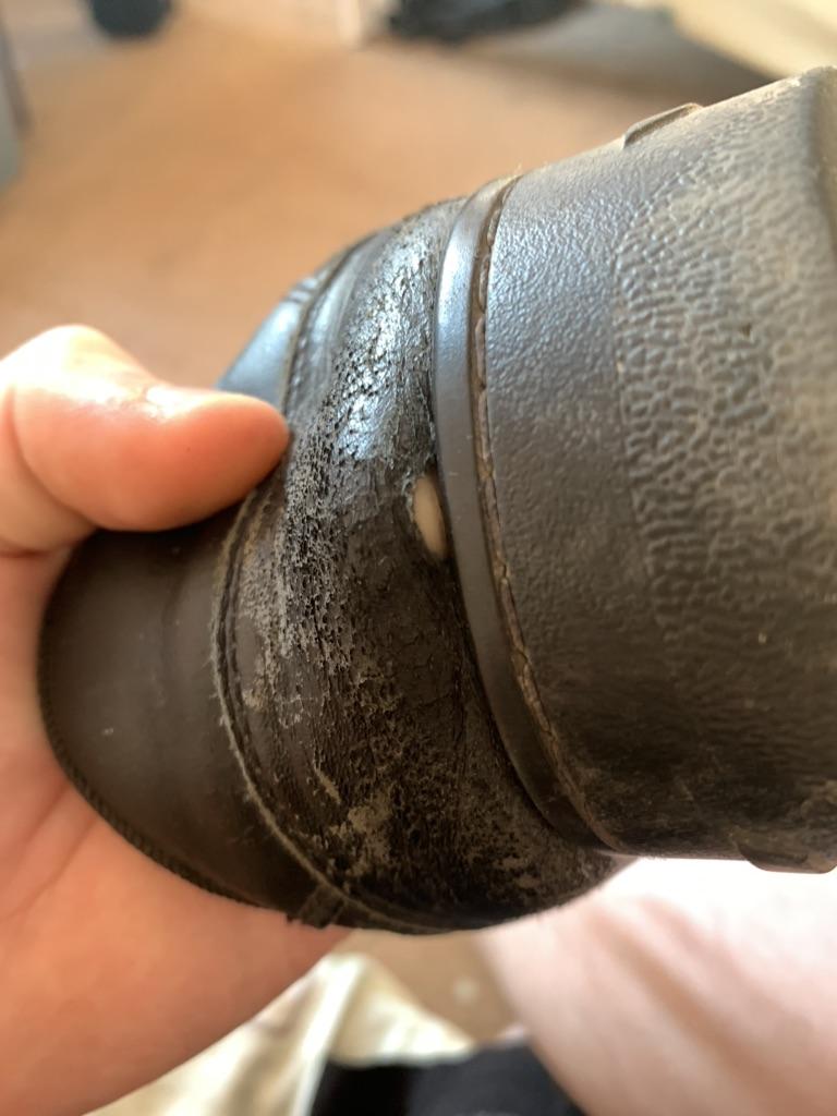 Год отжили в полу суровых условиях. Потрескались очень быстро. Слегка большие.