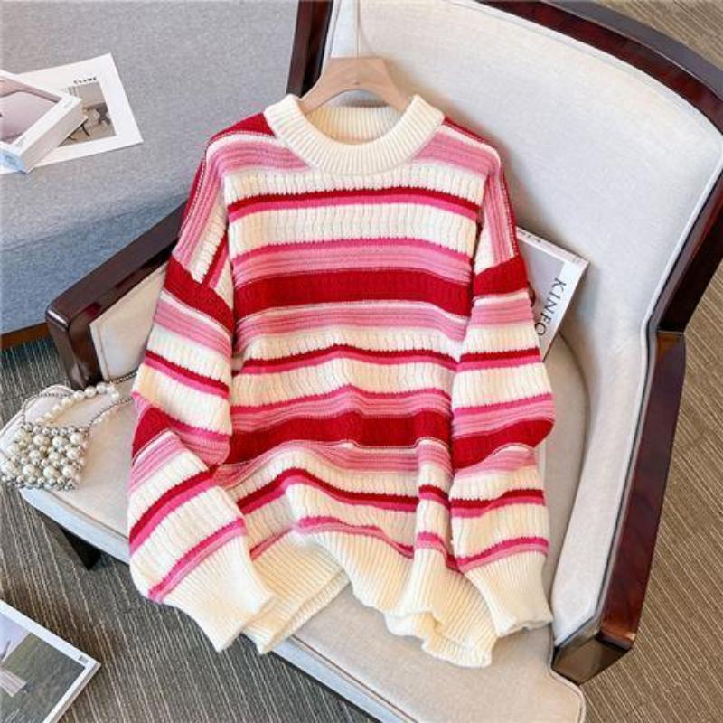 Пуловер, женский свитер, осень 2023, свободный круглый вырез, дизайн, в полоску, с телесным покрытием, вязаный свитер, пуловер, женские топы — купить товар онлайн с бесплатной доставкой по всему миру!