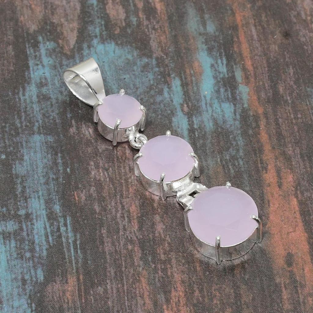 Кулон из серебра 925 пробы с розовым халцедоном ручной работы