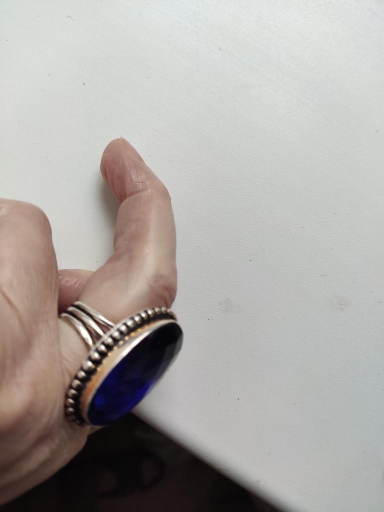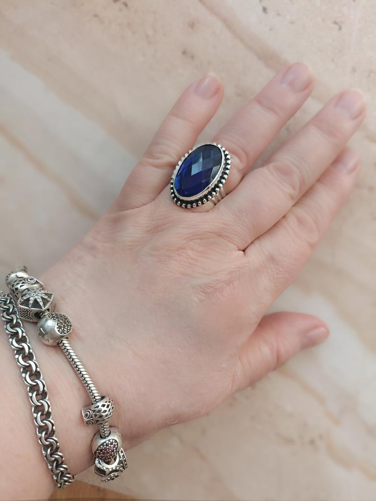 Кольцо меня очаровало. Надела на палец и снимать не хочется. Кольцо серебряное с сапфиром, выращенном в лаборатории. Цвет интенсивный синий. Очень рада покупке.