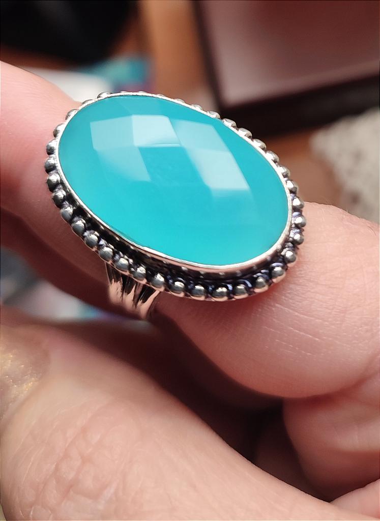 Синий халцедон драгоценный камень ручной работы твердые стерлингового серебра 925 пробы кольцо обещание ювелирные изделия