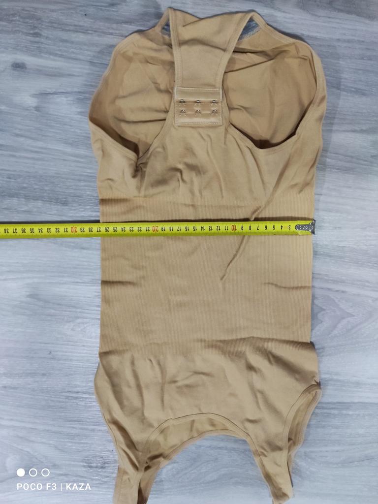 Пошив аккуратный. А вот насчёт эффекта утяжки- абсолютно нет! Мои параметры :ОПГ 83, ог 102, от85, об 103 см.Даже если брать размер поменьше, утяжки не будет - ткань не та.