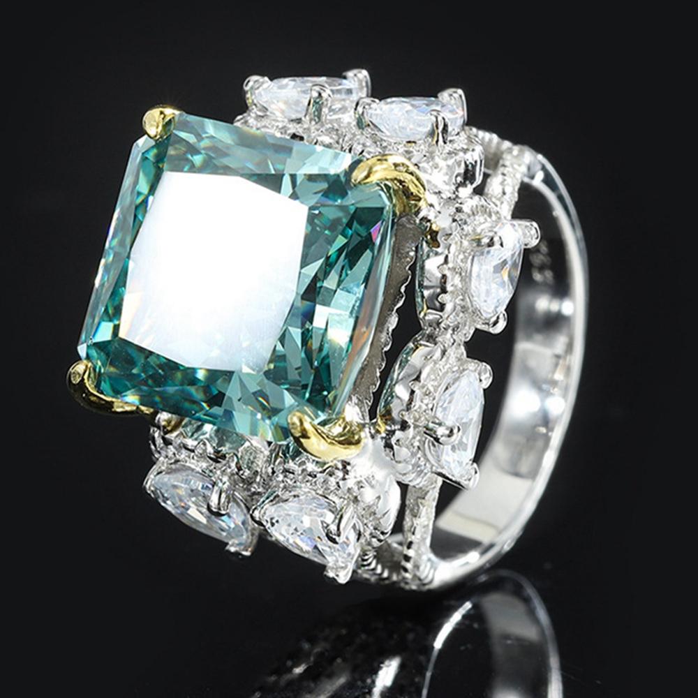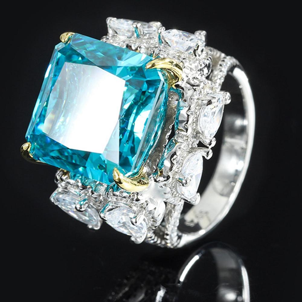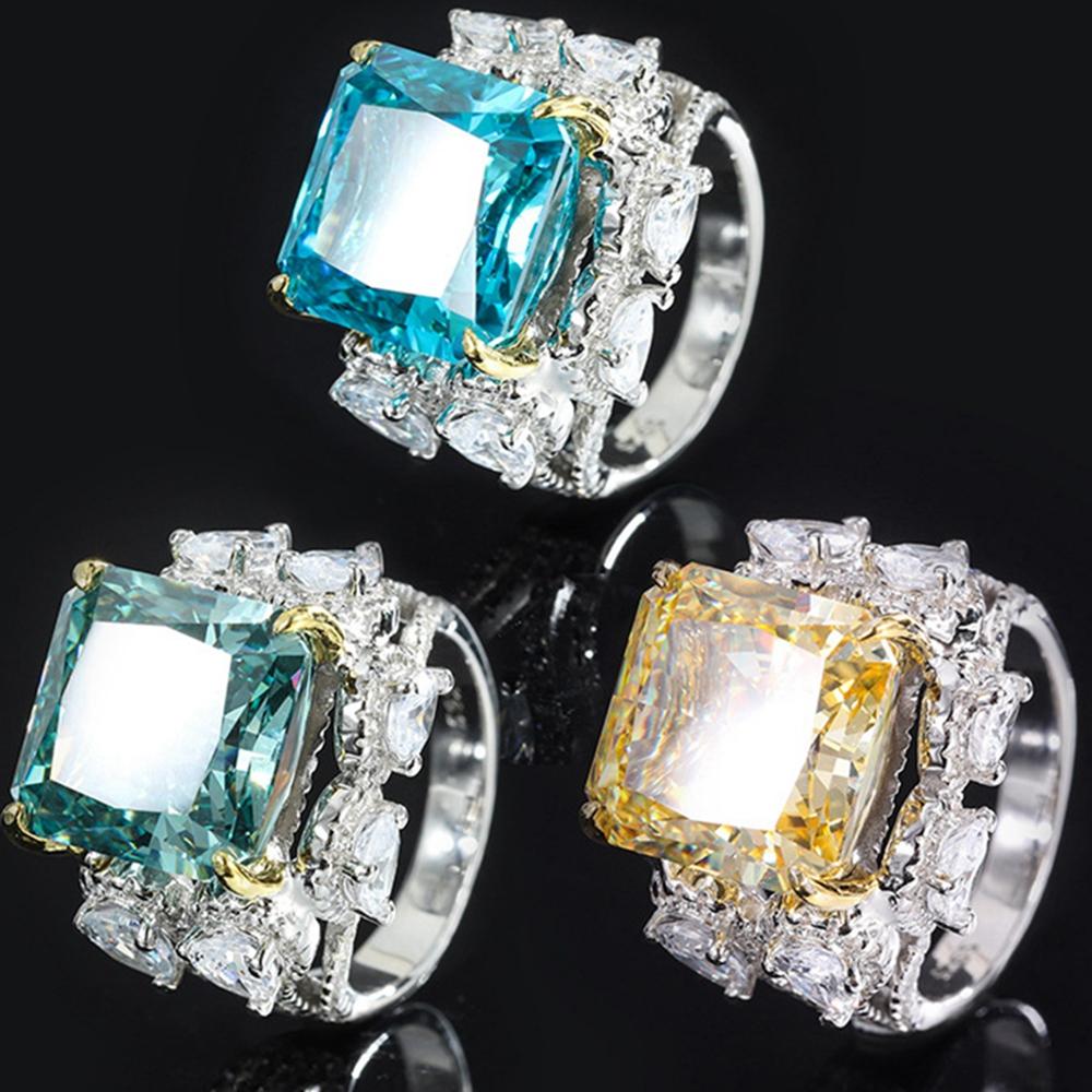Модное кольцо с позолотой 18 К, 13*13 мм, необычное яркое граненое кольцо с драгоценным камнем для женщин, подарок на годовщину, ювелирные изделия из стерлингового серебра 925 пробы