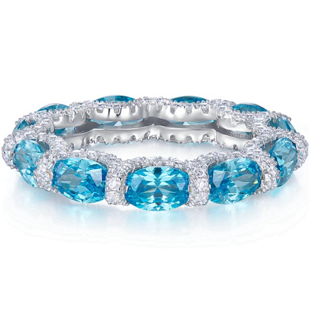 Модное кольцо курндум из белого золота 18 карат с аквамарином и сапфиром для женщин, подарок на годовщину, стерлинговое серебро 925 пробы, ювелирные изделия