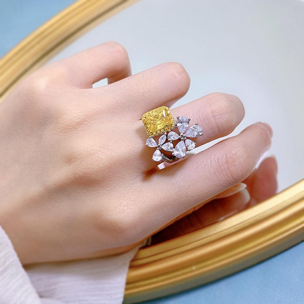 Модное кольцо из 18-каратного белого золота 6*8 мм сияющей огранки с желтым сапфиром и курндумом, подарок на годовщину, ювелирные изделия из стерлингового серебра 925 пробы