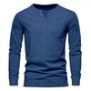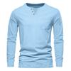 Мужская однотонная осенняя футболка с карманом на пуговицах и v-образным вырезом, мужские белые, черные базовые топы, футболки с длинными рукавами