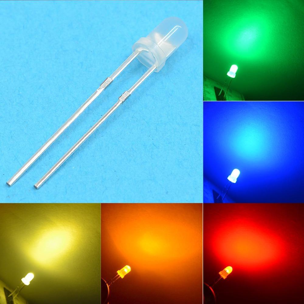 100 шт., белый, красный, синий, желтый, зеленый, 3 мм, рассеянный круглый светодиодный комплект, супер яркий свет, излучающий 6000-6500k, диодная лампа