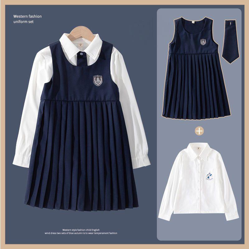 Весенне-осеннее детское платье в консервативном стиле, топ на бретелях, плиссированные платья + рубашка с длинными рукавами и вышивкой этикеток, официальная одежда для девочек, униформа
