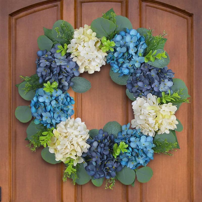 40 см синие венки из гортензий, искусственные цветы для лета, венок из гортензий для входной двери, фермерского дома, стены, окна, вечерние украшения