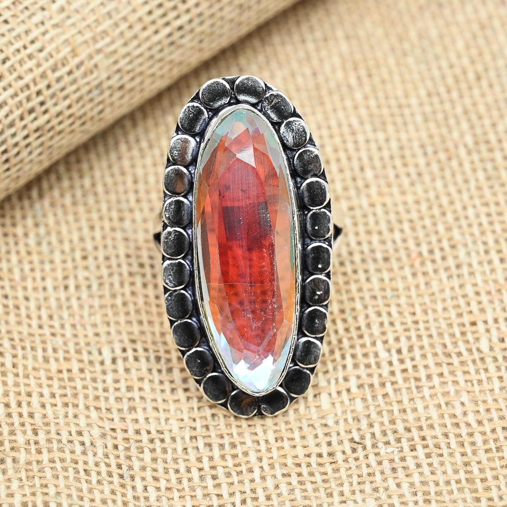 Rainbow Mystic Topaz 925 Sterling Silver Handmade Women Jewelry Wedding Gift Ring