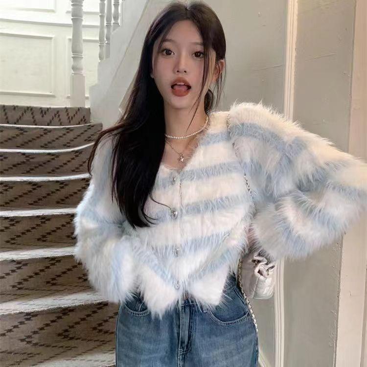Кардиган, женский свитер, новинка 2023 года, арктический бархатный вязаный кардиган, свитер с v-образным вырезом и длинными рукавами, ленивый свитер, кардиган, женский топ