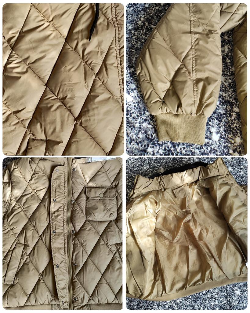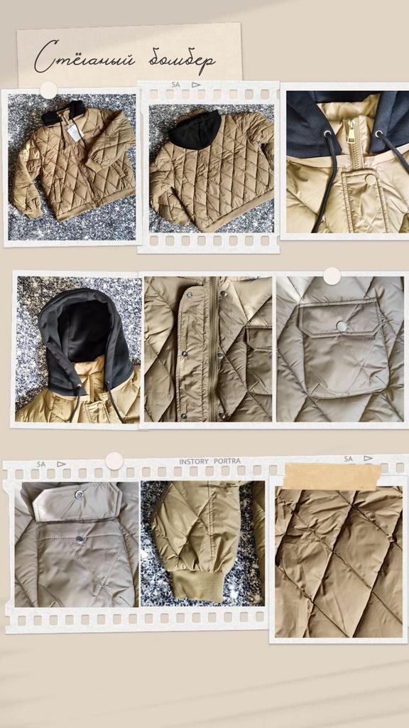 Стёганый бомбер Великолепное качество 👌🏻. Строчки идеальные, ни одной торчащей ниточки. Фурнитура окрашена в цвет изделия. Капюшон из мягкой но плотной ткани, синтетической, утягивается шнурком, можно отстегнуть. На манжетах и по низу эластичная резинка. На груди один рабочий кармашек который застёгивается на кнопку. По бокам два кармана, средний глубины, не застёгиваются. Материал- мягкая, матовая, очень приятная на ощупь, водоотталкивающая болонь. Не продувает. Подклад того же цвета. Внутри плотно набитый синтепон. Смотрится бомбер- бомбически, очень стильно. На мне размер L, села отлично, комфортно. 👱🏼♀️ Мои параметры: 📌 Рост -163 см 📌 ОГ -90 см 📌 ОТ -66 см 📌 ОБ -92 см 📌 Плечи -37 см Точные замеры оставлю в комментариях. ⭐️⭐️⭐️⭐️⭐️ Очень довольна покупкой, с удовольствием рекомендую 👌🏻✨✨✨